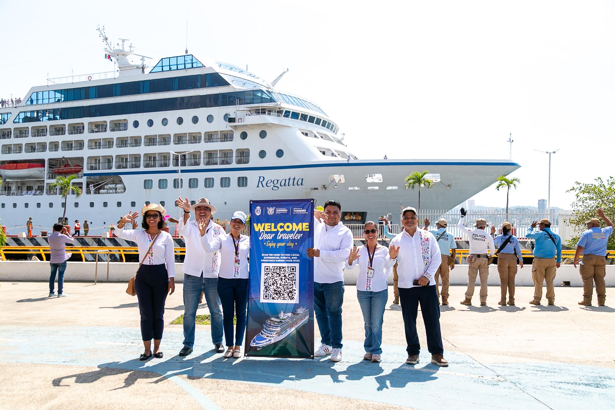 Consignado por la agencia Representaciones Marítimas S.A. de C.V., el MS Regatta llegó a las 12:00 horas, generando una notable derrama económica en beneficio de los prestadores de servicios turísticos. Los visitantes fueron recibidos con una colorida fiesta guerrerense, al ritmo de la música tradicional, que dio la bienvenida a los turistas que descendieron para disfrutar de las playas, la gastronomía y la hospitalidad del Hogar del Sol.