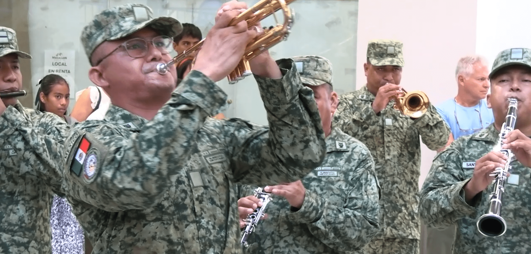 Banda militar realiza espectáculo sorpresa y emociona a acapulqueños