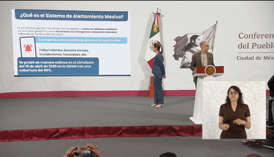 El Gobierno de México presentó este miércoles el nuevo Sistema Nacional de Alertamiento, una herramienta tecnológica que enviará mensajes simultáneos a todos los teléfonos celulares en caso de emergencias, incluyendo el Simulacro Nacional con hipótesis de sismo programado para este 19 de septiembre. Durante la conferencia matutina desde Palacio Nacional, se informó que más de 80 millones de usuarios de telefonía móvil recibirán en sus dispositivos un mensaje de prueba como parte del ejercicio preventivo. José Merino, titular de la Agencia de Transformación Digital y Telecomunicaciones, explicó que la señal de alerta proviene de sensores del Centro de Instrumentación y Registro Sísmico (CIRES) ubicados en costas y mares del Pacífico. Cuando estos detectan un movimiento, se activa el sistema que transmite la señal al C5 de la Ciudad de México, desde donde se replica a las torres de telefonía celular y finalmente llega a los dispositivos móviles. Merino detalló también cómo activar las notificaciones en sistemas Android y iPhone, y puso a disposición el número 079 para orientación. “Este es el mensaje que queremos enviar, este es un mensaje de prueba… es un mensaje para probar el sistema nacional de alertas como parte del Gobierno de México… este es el mensaje que por defaul que Apple y los iphone tienen configurado… este 19 va a volver a salir ese mensaje». indicó.