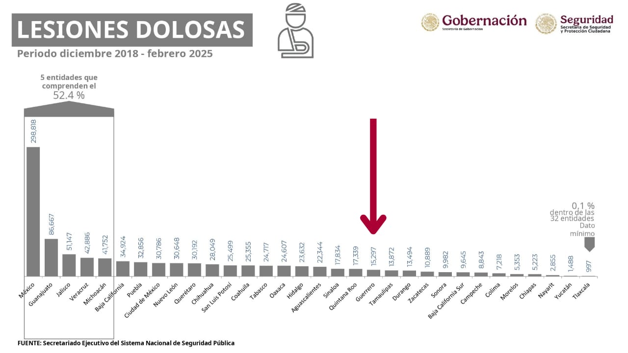 -Lesiones dolosas: Guerrero se ubica en el lugar 19 de 32.
