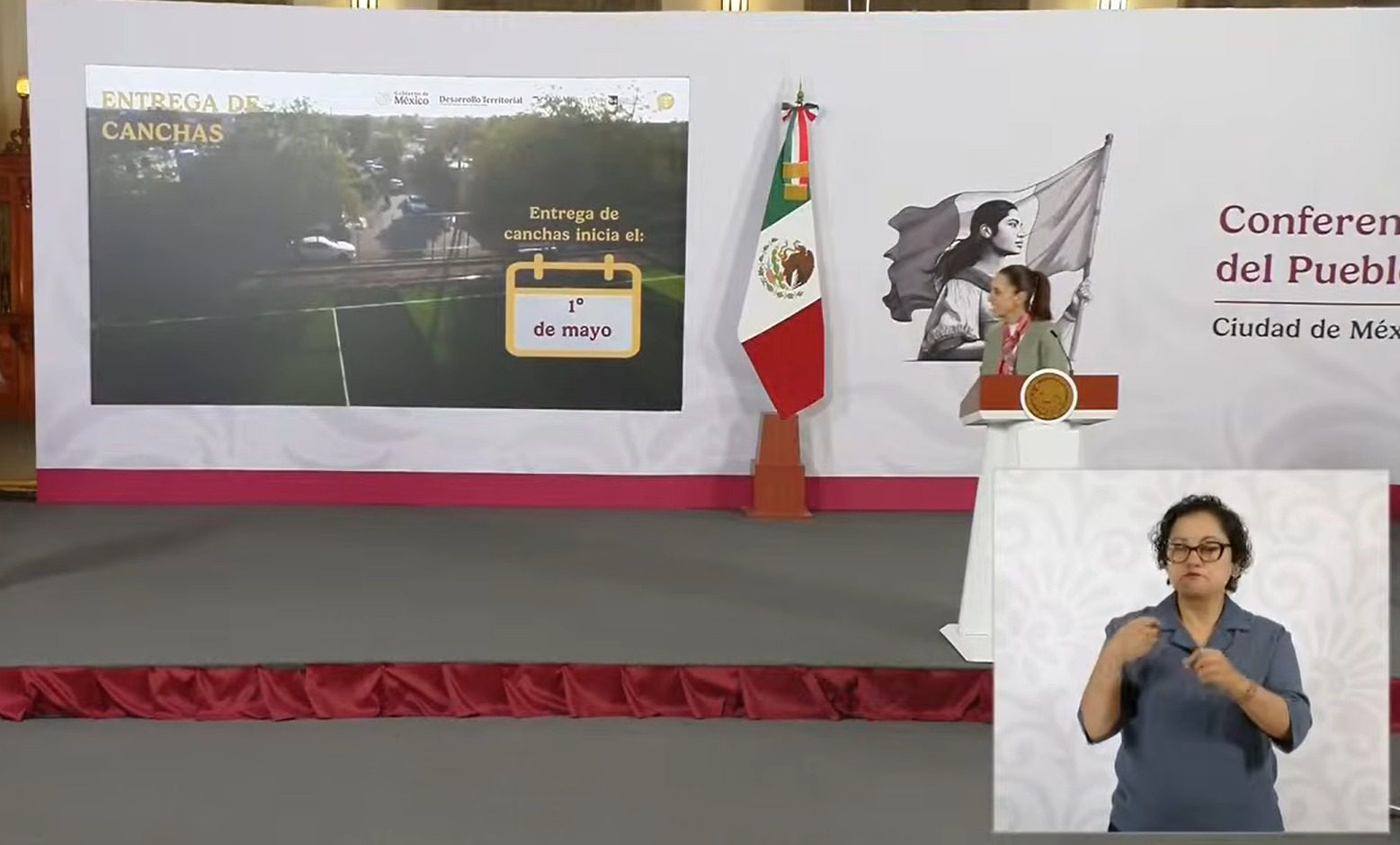 La secretaria de Desarrollo Agrario, Territorial y Urbano, Edna Elena Vega Rangel, detalló que estas acciones se alinean con la meta nacional de construir y rehabilitar más de mil 200 canchas en 500 municipios del país.